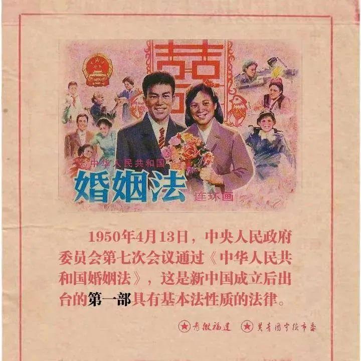 新中国成立后,过去封建社会畸形的社会道德、社会习俗以及半殖民地萎靡的社会风气,均在中国共产党和人民政府有领导、有步骤的扭转与扫除之列,并集中体现为对旧的婚姻制度的改革。为了有准备地废除封建的婚姻制度,早在全国解放前夕的1948年冬,中共中央妇女运动委员会和中共中央法律委员会即着手进行新婚姻法的起草工作。中央人民政府成立后,政务院政治法律委员会同中华全国民主妇女联合会等有关部门召开联席会议,多次就新婚姻法草案的各章各条进行研究、讨论和修改。1950413,中央人民政府委员会举行第七次会议,审议通过了《中华人民共和国婚姻法(草案)》。430日,毛泽东主席签发命令公布《中华人民共和国婚姻法》,自51日起施行。这是新中国成立后制定的第一部基本法律。