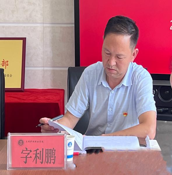 党委专职副书记字利鹏传达了州委常委、州委组织部长翁斌在全州组织系统半年工作推进会上的讲话精神,校党委委员、组织部长李洁安排部署了近期党建工作,护理系党支部书记袁秀林、基础医学部党支部书记段益顺分别汇报了党发展工作情况。