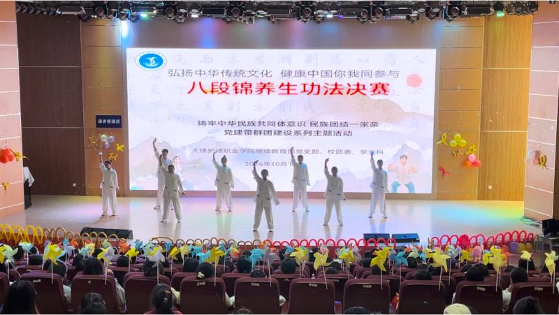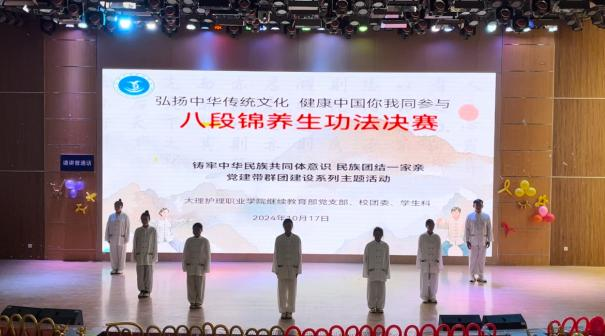 近期,KY开元集团官网入口继续教育部党支部联合学校多部门,成功开展了“铸牢中华民族共同体意识 民族团结一家亲 党建带群团建设系列主题活动——弘扬中华传统文化 健康中国你我同参与 八段锦养生功法比赛”主题活动。此次活动以八段锦养生功法比赛为依托,旨在全面贯彻落实党的二十大,党的二十届二中全会和党的二十届三中全会精神,充分发挥党建带群团建设的作用,深入开展铸牢中华民族共同体意识教育实践活动,促进民族团结进步,推进和谐美丽清廉校园建设,弘扬中华传统文化,致力于提升学生的文化意识,促进学生的文化自信,培养学生的团队协作精神,激发学生对健身的浓厚兴趣和热情。
