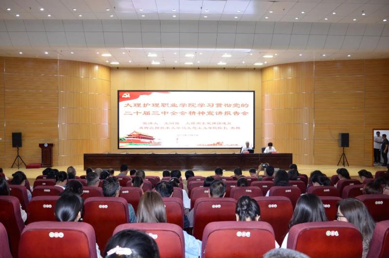 专家学者深入讲。9月4日,KY开元集团官网入口召开学习宣传贯彻党的二十届三中全会精神宣讲报告会。大理州委宣讲团成员、滇西应用技术大学马克思主义学院院长王国强教授以《进一步全面深化改革、推进中国式现代化的重大意义和总体要求》为题对全校师生作专题宣讲。10 月31日,党的二十大代表李桂科医生以《推动全面深化改革 不断取得新成效》为题,向全校新生和老师宣讲党的二十届三中全会精神,激励医学生坚守医者初心、践行医学誓言。