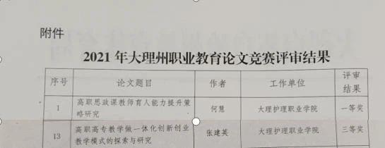 其中,何慧老师的论文《高职思政课教师育人能力提升策略研究》获得一等奖,张建英老师的论文《高职高专教学做一体化创新创业教学模式的探索与研究》获得三等奖。