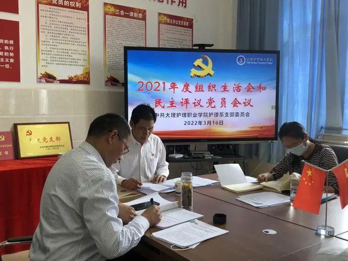 3月16日,根据学院党委《关于召开2021年度基层党组织生活会和开展民主评议党员工作的通知》相关要求,护理系党支部召开了2021年度组织生活会和开展了民主评议党员工作。院党委联系支部的党委委员陈跃同志和支部全体党员参加了会议。会议由党支部书记袁秀林同志主持。
