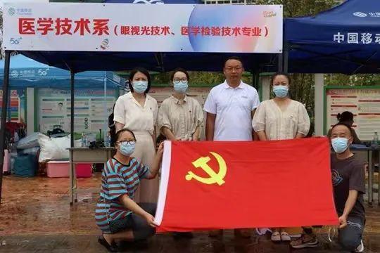 党员带头迎新生,先锋服务暖人心。在开学期间的疫情防控工作中,医学技术系全体党员亮明身份,做到支部靠前、党员先行,共筑校园防线,让党旗在校园疫情防控一线高高飘扬!
