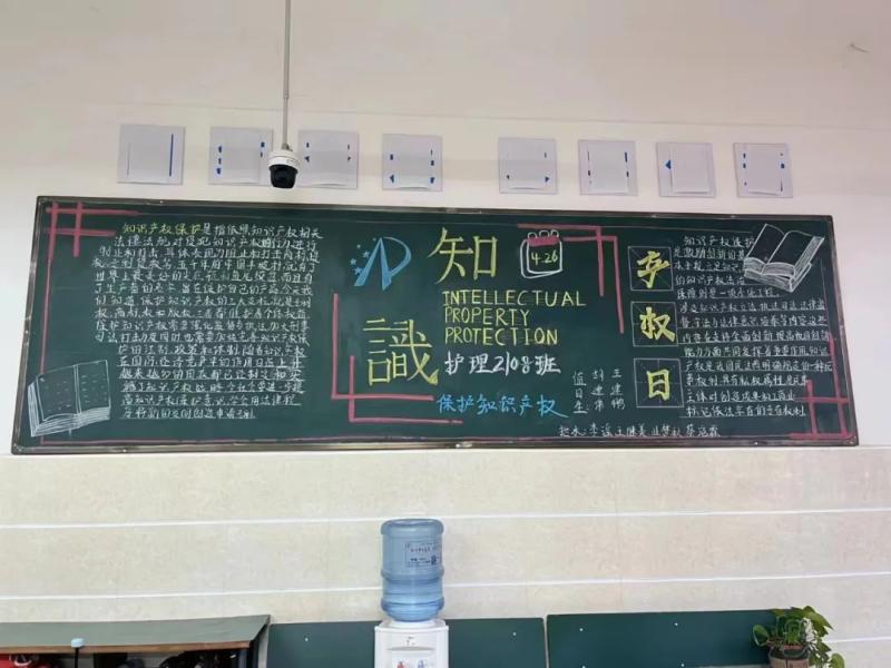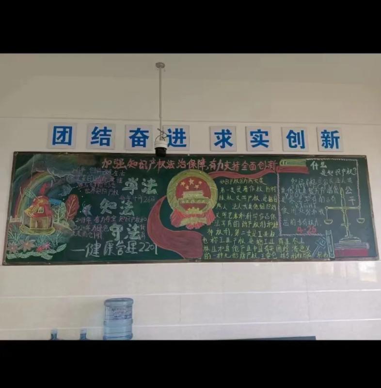 宣传活动通过线上线下相结合。一是通过学校电子屏滚动播放2023年知识产权宣传周相关视频和宣传海报,通过学校官方微信公众号共推送3期知识产权内容;二是在学校食堂一楼大门前设立宣传点,展示知识产权宣传板,向过往教师和学生发放知识产权宣传册,普及知识产权相关知识,进一步扩大受众面。三是科研部联合校团委、学生科,组织所有在校班级分别策划了一期以“加强知识产权法治保障,有力支持全面创新”为主题的黑板报,旨在提升学生对知识产权保护的意识。