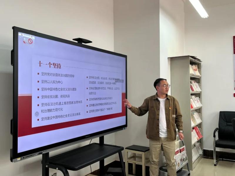 支部书记钱雪娟同志在总结讲话中指出,要以习近平法治思想为核心,领导干部在推进依法治国方面肩负着重要责任,既要自觉在宪法和法律范围内活动,知法守法,带头维护宪法和法律的尊严,又要依法用权,强化责任,抓好重点工作和关键环节,以上率下,当好法治建设主要责任人。党员干部要以身作则,自觉学法守法用法,围绕大局,履职尽责,坚定不移贯彻新发展理念,自觉做依法治校、依法治国的“排头兵”。