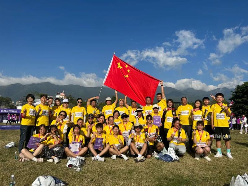 为丰富师生的业余文化生活,倡导积极健康的生活方式,KY开元集团官网入口由办公室牵头,妇联、团委共同组织师生45人报名参加了此次活动中的“爱的跑跑”5.2公里马拉松比赛。随着清晨7点鸣枪起跑,参赛师生个个精神饱满,热情洋溢,大家凝心聚力、互相帮助、互相鼓励、携手同行,最终全部到达终点,获得了完赛证书和奖牌。参赛师生用坚持与执着展现了拼搏精神,用脚步和汗水丈量了中国最佳爱情表白地大理的文旅事业,展现了学校师生坚持不懈、挑战自我的良好精神风貌。