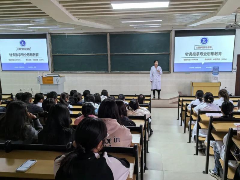针灸推拿专业负责人李波老师为2023级针灸推拿专业和中医康复技术专业讲授了“专业第一课”。她向同学们介绍了学校的基本情况、专业的课程设置情况和就业去向。激励同学们树立专业自信,培养学习能力,做到德、智、体、美、劳全面发展!