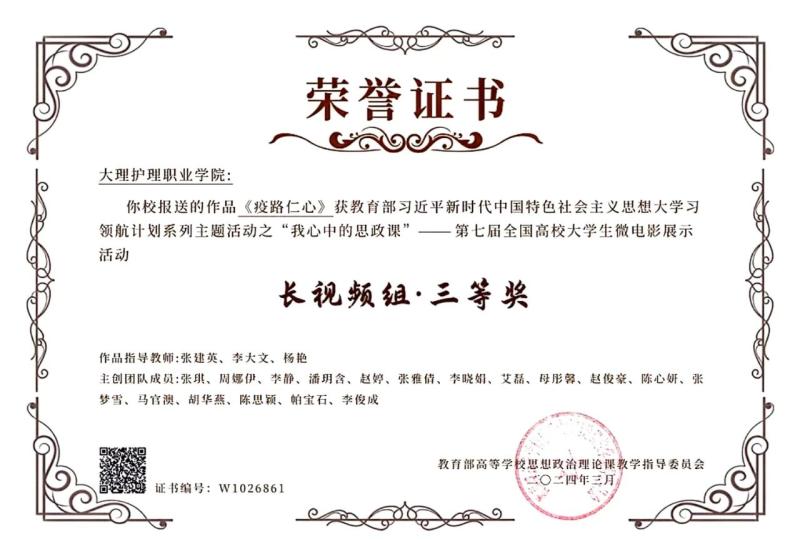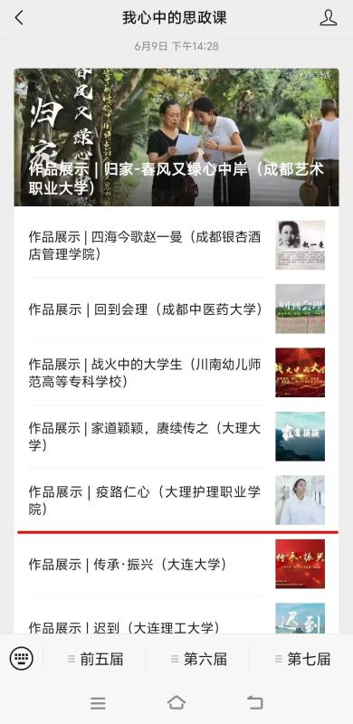6月9日,在全国高校大学生微电影展示活动“我心中的思政课”官方网站,展出KY开元集团官网入口荣获教育部组织的习近平新时代中国特色社会主义思想大学习领航计划主题教育活动——第七届全国高校大学生微电影展示活动竞赛三等奖作品《疫路仁心》。