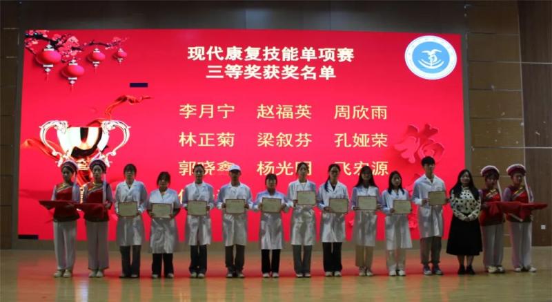 学校党委书记廖惠群,党委副书记、院长蔡德周等领导亲临现场为第七届学生康复技能大赛获奖的同学颁奖,并激励获奖的选手再接再厉,百尺竿头,更进一步,希望全校学生以受表彰的同学为榜样,顽强拼搏、刻苦努力、奋起直追。