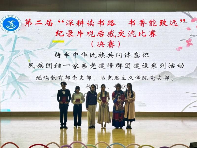 近日,学校继续教育部党支部联合学校多部门,成功开展了“深耕读书路 书香能致远 铸牢中华民族共同体意识 民族团结一家亲 党建带群团建设系列主题活动——第二届纪录片观后感交流比赛”。活动旨在全面贯彻落实党的二十届三中全会精神,充分发挥党建带群团建设的作用,深入开展铸牢中华民族共同体意识教育实践活动,促进民族团结进步,推进和谐美丽、清廉校园建设。活动通过组织学生观看纪录片并引导他们表达出观后感,点燃他们对知识探索的热情,培养他们勤于思考和乐于探究的习惯,进而全面提升学生的综合素质。