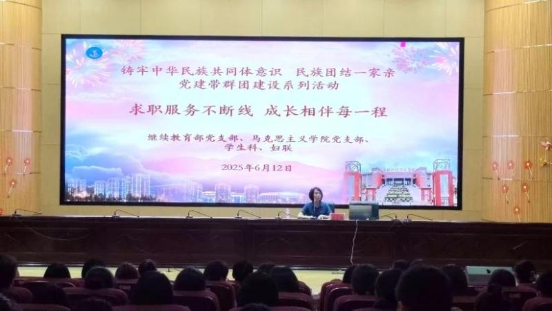 612日,学校继续教育部党支部开展“铸牢中华民族共同体意识 民族团结一家亲 党建带群团建设——求职服务不断线 成长相伴每一程” 系列主题活动。活动以党建为引领,通过经验分享、职业指导、现场互动答疑等形式,进一步帮助学生明晰职业规划方向,为学生提供就业服务,推动党建与群团建设深度融合,切实助力青年学子成长成才。
