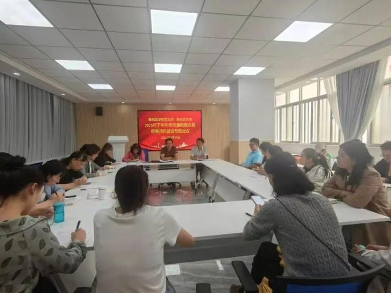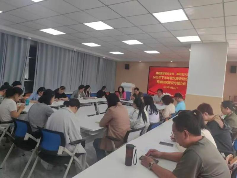 9月24日下午,学校基础医学部党支部召开党风廉政建设暨师德师风建设专题会议。会议由党支部书记段益顺主持,基础医学部党支部全体党员和基础医学部全体专职教师参加会议。