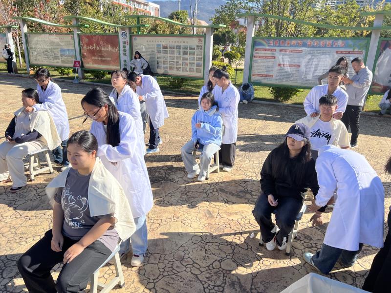 11月12日至14日,学校康复技术系党支部联合康复技术系、校团委,组织全体党员和师生,在校园知行广场开展以“弘扬中华优秀传统文化,彰显中医康养特色”为主题,为期三天的校园“中医集市”文化活动。活动旨在深入贯彻党建引领育人工作的要求,充分发挥党支部的战斗堡垒作用,以多元体验、浓厚氛围,做好学校2025年冬季田径运动会服务工作,让全体学子沉浸式感受传统中医药文化魅力,留下校园生活温润难忘的时光。活动吸引了全校2000余名师生参与,场面热闹非凡。