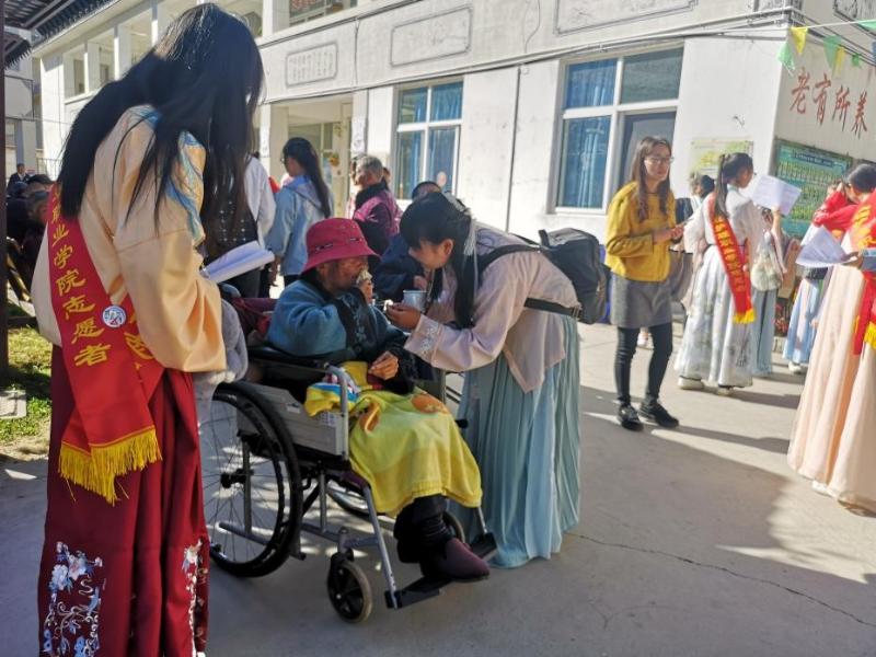 2018年11月14日,红嘴鸥开始来洱海过冬了,冬日暖阳照在大理市南山养老院里。KY开元集团官网入口基础教学部党支部,带领院团委汉服社、爱心社、中医社的60名学生到养老院进行“党建带团建,中华传统美德师生行”活动。