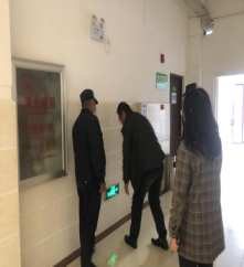 随后,杨斌科长一行人对学院办公楼、教学楼、生活区进行安全隐患排查,针对排查中存在的安全出口不畅通、道路石板塌方施工等安全隐患,杨斌科长现场提出要求,保安人员立即设立锥桶警戒,畅通安全通道,消除安全隐患。通过巡查还发现学院3栋教学楼部分消火栓无水,杨斌科长要求相关人员联系维修单位及时进行维修,切实保障学院消防设备正常运行。