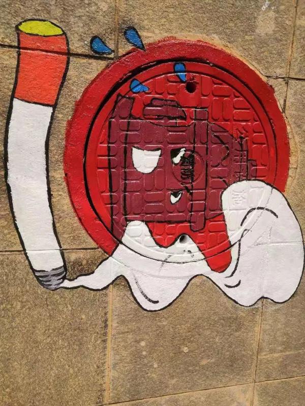 本次活动地址在瞻远楼前,我们意在将校园的每一个平凡的井盖变成不平凡的艺术品,让“井盖文化”见证校园文明,在以后我们漫步校园的时候,会发现脚下的小惊喜,呆萌可爱的大白,Q版的禁止吸烟的标志,英勇无畏的消防员叔叔,救死扶伤的白衣天使……这一个个无敌的小“景”盖,既展现了同学们的阳光和智慧,也彰显了她们那一颗颗赤诚的爱国心。
