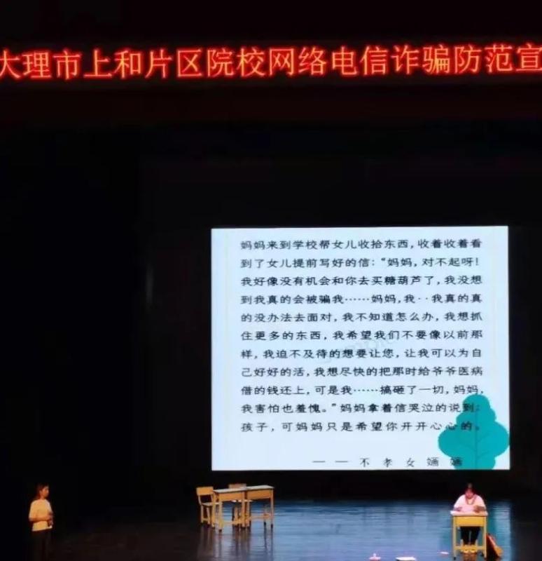 活动中同学们将自己的学习和认识用歌舞,相声表演等方式精彩的呈现出来,希望大家一起学习,一起成长,用更多的方式告诉身边的人,什么是网络电信诈骗,我们又该如何预防。在海东开发管理委员会的坚强领导下,在大理市公安局的大力支持下,在上和片区7所院校全体在校师生的共同努力下,本次活动圆满结束。