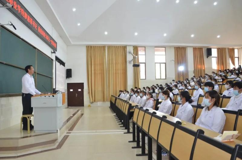 课堂上,蔡德周院长以《加快推进教育现代化,奋力谱写开元发展新篇章》为题,向同学们阐述了作为高校学生学习贯彻党的二十大精神的重要性。讲解了教育现代化的概念,以我国职业教育发生的格局性变化结合大理本地及开元实际向学生介绍了开元发展目标——双高计划。并向学生介绍了学校积极申报云南省高水平专业群项目《老年保健与管理专业群》的情况。寄语同学们,要以党的二十大精神为指引,坚定不移听党话、跟党走,用科学理论武装自己,努力学习,踔厉奋发,勇毅前行,奋力谱写学校发展的新篇章。