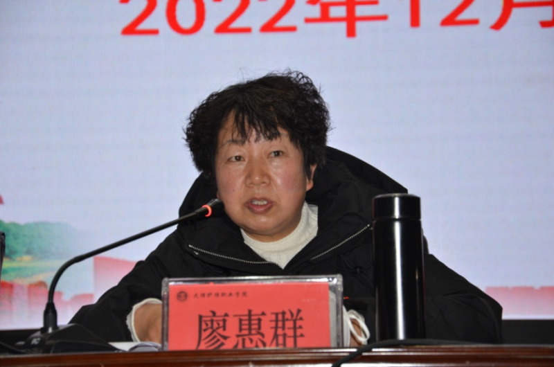 第一阶段会议上,大理州委宣讲团成员,大理州委宣传部领导班子成员、大理州社科联副主席黄顺同志,向全校教职员工作题为《深入学习贯彻党的二十大精神 凝心聚力新时代 团结奋斗新征程》的宣讲。宣讲从党的二十大的主题、主要成果,过去5年的工作和新时代10年的伟大变革,马克思主义中国化时代化,中国式现代化,全面建设社会主义现代化国家的目标任务,坚持党的全面领导和全面从严治党,应对风险挑战,以党的二十大精神为指引、奋力开创新时代大理高质量发展新局面八个方面展开。黄顺副主席的宣讲深入浅出、逻辑严谨、理论联系实际、通俗易懂,对学校深刻把握好党的二十大精神,推进深化学校现代职业教育体系建设改革各项工作具有很强的指导意义,也为学校宣讲团成员作出了宣讲示范。