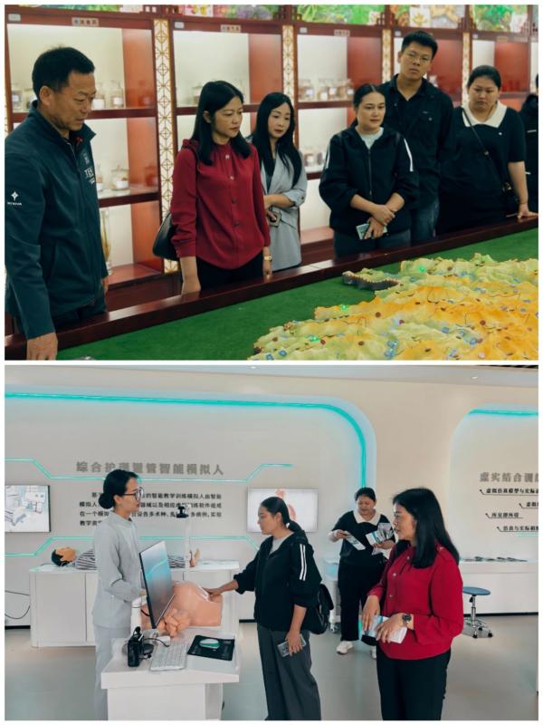 首先双方深入KY开元集团官网入口医学技术系视觉验光实训室、眼镜定配技术实训室,康复技术系中药标本陈列室、中医诊断实训室、运动治疗实训室,护理系虚拟仿真实训室等实践教学场所进行实地考察和交流。