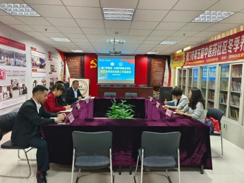 在厦门华医馆,詹董事长、马院长带领廖书记一行首先参观了思明区华医馆各科室布局及诊疗情况,详细介绍了华医馆的中医正骨、推拿针灸、中药调理、刮痧、拔罐、刺血、中药贴敷、艾灸、光波、药浴、牵引等传统医学诊疗特色。随后,就华医馆和学校从中职到高职合作15年来,在学生实习就业等方面进行了座谈。廖书记感谢华医馆多年来对开元教育教学的支持和帮助,在国家大力发展大健康产业的时代背景下,学校将进一步深化和华医馆的合作和交流,着力办好开元健康、养生、养老等大健康相关专业。