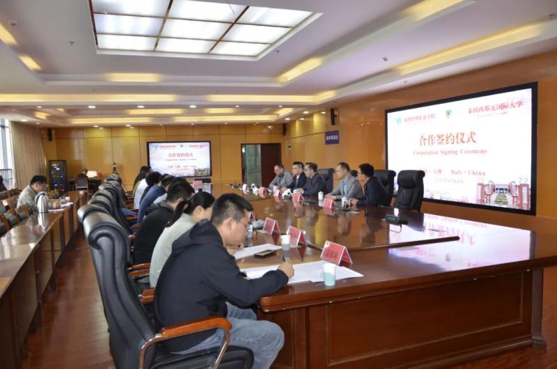 蔡德周院长向泰国西那瓦国际大学一行介绍了学校的发展历程、学科优势和人才培养特色。他表示,双方此次合作是落实国家“一带一路”教育行动的生动实践,更是构建中国—东盟卫生健康命运共同体的重要支点。希望在未来的合作中,两校共建人才培养立交桥,依托西那瓦大学成熟的“专升本”培养体系,为开元学子打通“国内夯实技能+国际提升学历”的双向通道;共培双师型教学团队,通过教师互访、课程共建,将泰式医疗旅游服务经验与白族传统康养智慧有机融合。