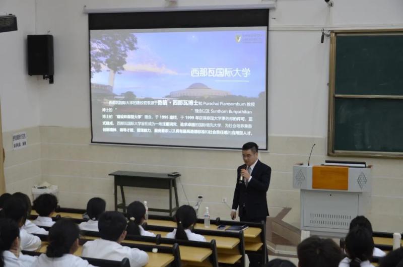 西那瓦国际大学文理学院执行院长刘泽位为开元200余名有提升学历意向的学生作了“专升本”留学项目宣讲。
