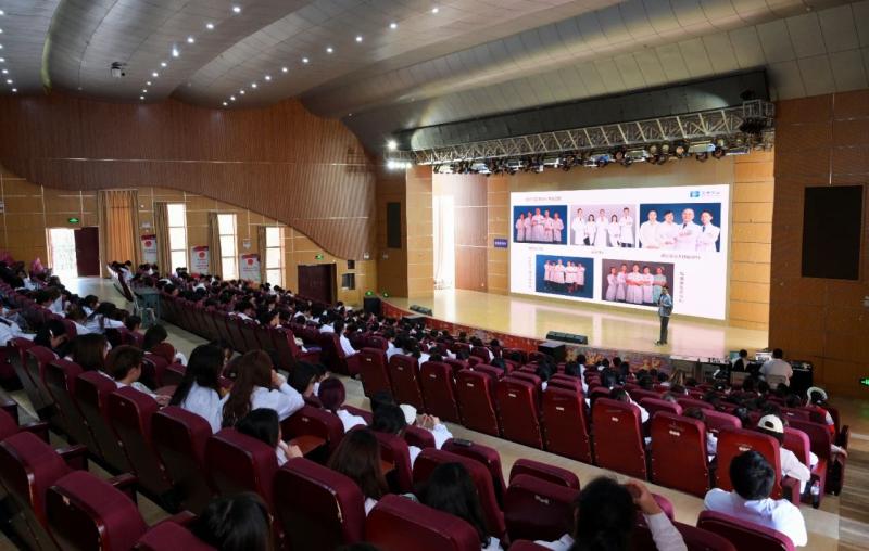 座谈交流会后,参会企业及医院领导到第一报告厅进行企业和医院宣讲,向全体眼视光技术专业学生、视觉训练与康复专业学生介绍实习生带教培养、企业文化、发展理念、管理模式、薪资福利待遇、学生发展提升平台等情况,同时,进行了积极互动交流,促进了学生和企业及医院的双向了解,为即将实习的学生走向岗位奠定了良好的思想准备,也为明年实习的同学明确了努力方向。