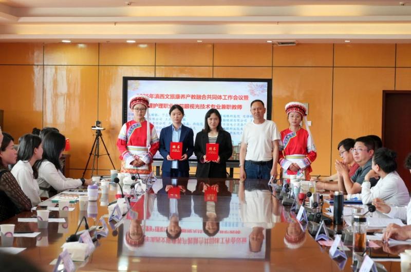 会上,蔡德周院长与新合作的昆明星耀普瑞眼科医院、大理普瑞眼科医院签订了校企合作协议;廖惠群书记、蔡德周院长分别为昆明星耀普瑞眼科医院、大理普瑞眼科医院授牌“KY开元集团官网入口眼视光技术专业教学实习医院”;字利鹏副书记为合作企业及医院实习带教老师颁发兼职教师聘书;石龙富副院长、李洁副院长为合作企业及医院2024年度优秀带教老师颁发奖状。