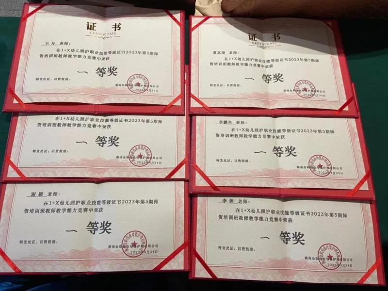 4月18日-4月24日,KY开元集团官网入口教师在全国职业院校, 1+X幼儿照护职业技能等级证书2023年第5期师资培训班教师教学能力竞赛中荣获一等奖。