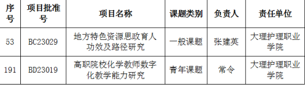 近日,云南省教育厅对2023年度云南省教育科学规划项目进行拟立项名单的公布,开元张建英老师的课题《地方特色资源思政育人功效及路径研究》(一般项目)、常令老师的课题《高职院校化学教师数字化教学能力研究》(青年项目)获批立项,这是学校此类课题首次获批立项。