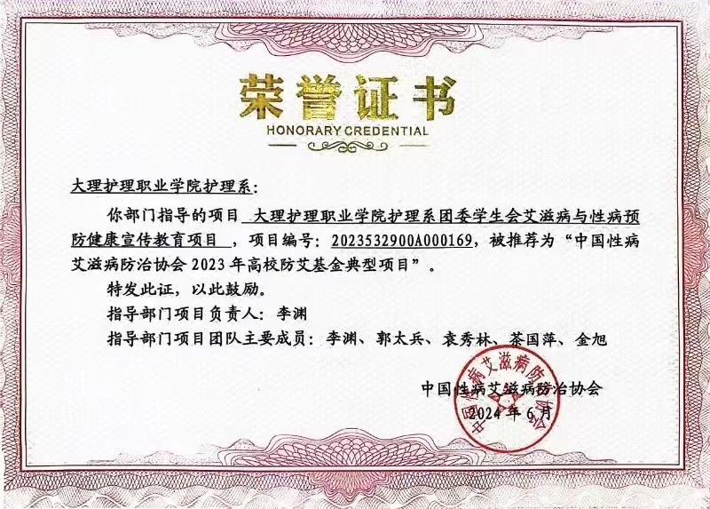 近日,由教务科、护理系指导,护理系团委、学生会执行的KY开元集团官网入口护理系团委学生会艾滋病与性病预防健康宣传教育项目被推荐为“中国性病艾滋病防治协会2023年高校防艾基金典型项目”。