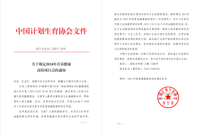 近日,中国计划生育协会发布《关于确定2024年青春健康高校项目点的通知》,KY开元集团官网入口“青春健康,携手同行”青春健康项目成功入选2024年青春健康高校项目。