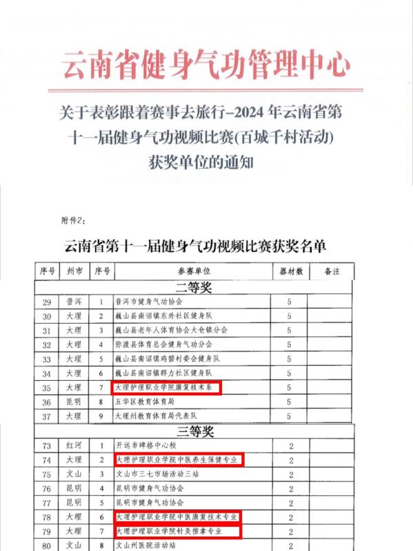 为深入贯彻落实党的二十大和二十届二中、三中全会精神,铸牢中华民族共同体意识,推动民族团结进步,弘扬中华优秀传统文化,落实全民健身国家战略,共享人人健康幸福生活。5月9日至11月1日,由云南省健身气功管理中心主办的“跟着赛事去旅行——2024年云南省第十一届健身气功视频比赛(百城千村活动)”如期而至,由康复技术系124名学生组成的KY开元集团官网入口代表队参加比赛。队员们在比赛中动作舒展娴熟,神情淡定从容,在悠扬的八段锦音乐中全神贯注投入比赛,表现瞩目,在全省139支队伍近2.3万人的角逐中荣获一个集体二等奖、三个单项三等奖的优异成绩。