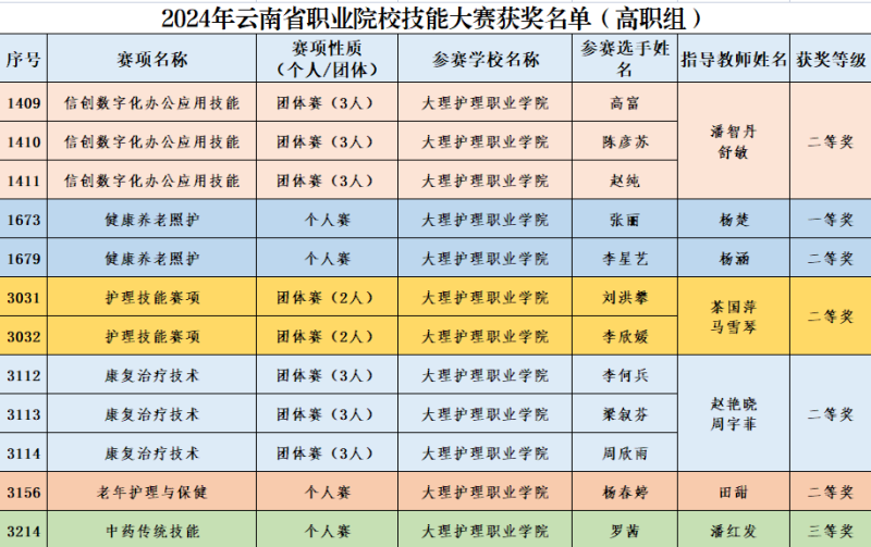 2024年云南省职业院校技能大赛已全部完成比赛,经评审、公示。开元共有6个赛项,12名学生,10名指导教师获奖,其中荣获一等奖1项,二等奖5项,三等奖1项。