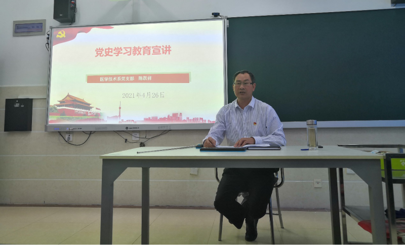 4月26日上午在医学技术系204多媒体教室,学院党委委员、副院长陈跃祥为医学技术系党支部全体党员及教务科等分管科室教师做了党史学习教育专题宣讲。