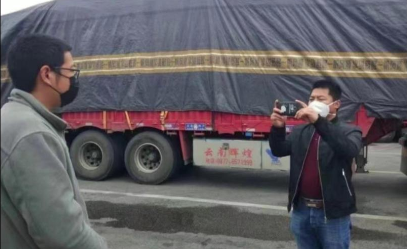 2020年2月11日,大理州首批援助湖北的物资发车,李百祥随车队采访。