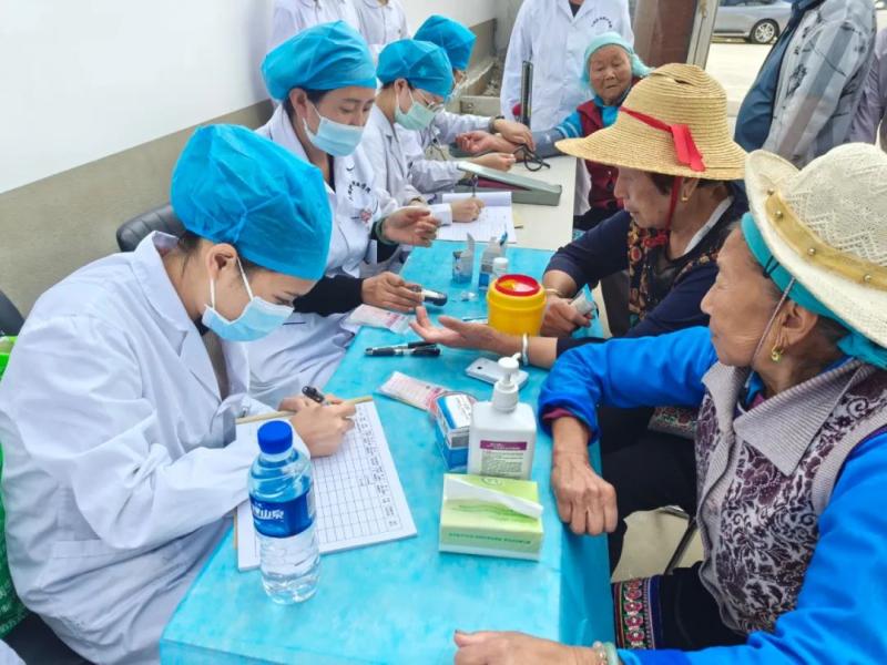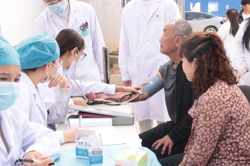 活动分为四个小组进行开展。血压、血糖测量组由学校门诊部医生为当地村民测量血压、血糖,并对村民进行健康宣教,增加当地居民对高血压病、糖尿病的正确认识,积极预防。