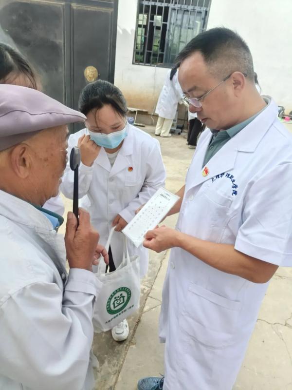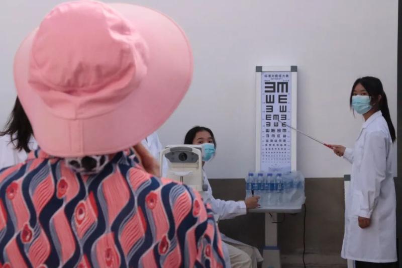 视力筛查组在开元医学技术系主任王增源老师的指导下,为村民开展视力筛查,并对筛查结果进行耐心解释,传授爱眼护眼知识。