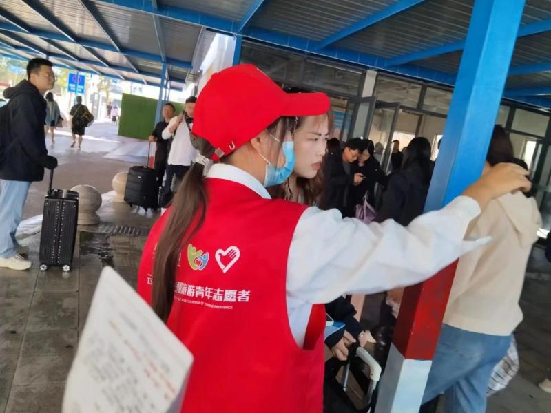 “双节”期间,大理开启“人从众”模式,每天都有来自全国各地的游客们落地大理站,从这里开始惬意的假期。在人来人往中,我们的志愿者学生身穿红马甲,坚守在出站口及天桥对面的重点路段,为游客提供全面贴心的志愿服务,展示大理青年的良好精神风貌。