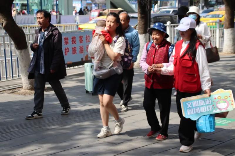 在服务期间,开元志愿者展现出了较高的专业素养和服务意识。他们热情周到地接待来往的旅客,不仅主动为旅客提供了乘车指导,还根据旅客的需求,向他们推荐了大理的特色旅游景点。面对行动不便和携带行李较重的乘客,志愿者们更是热心帮助。这种细致入微的服务,给旅客们的大理之行留下了美好的印象。