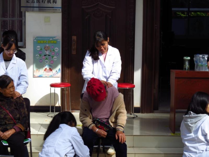 在社区卫生室,志愿者们发挥专业所长,为村民们提供推拿按摩养生保健服务。并耐心询问村民的身体状况,针对常见的颈肩腰腿痛等问题,运用娴熟的推拿手法,帮助村民缓解疼痛、疏通经络。在服务过程中,志愿者们还向村民普及中医养生保健知识,引导村民树立正确的健康观念,提升自我保健意识和能力。