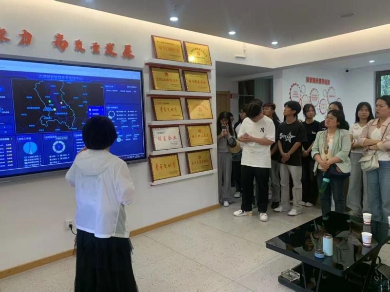师生还实地参观社区智慧养老平台,通过大数据屏幕直观了解智能监测、紧急呼叫等科技助老应用。在居家康养理疗服务中心,学生体验了中医推拿、康复理疗等设备操作;在“幸福食堂”考察老年营养配餐服务,深入理解“社区+居家”养老模式的创新与实效。参加活动的老年保健与管理2201班学生表示:“这次实践活动让我们看到养老行业的专业化、智能化趋势,对未来职业发展有了更清晰的规划。” 榆华社区养老服务中心负责人充分肯定志愿者表现,期待与学校共建长效实践基地,助力养老事业高质量发展。