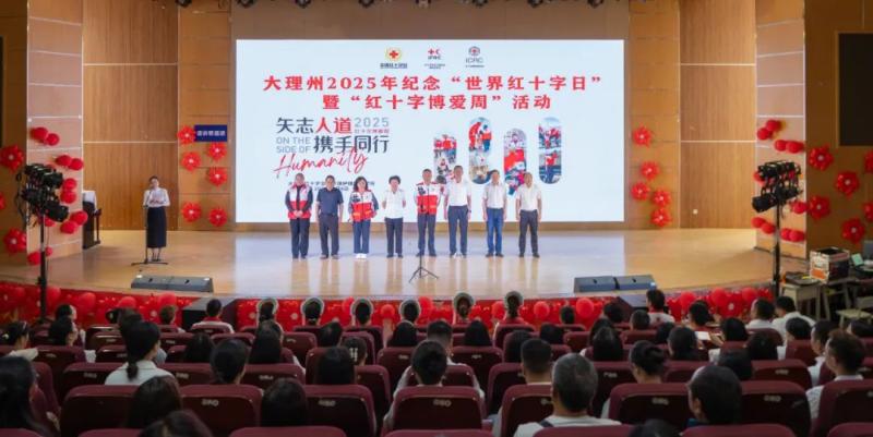 5月8日,大理州纪念第78个“世界红十字日”暨“红十字博爱周”活动启动仪式在KY开元集团官网入口举行。活动以“矢志人道 携手同行”为主题,唱响“人道、博爱、奉献”的红十字精神主旋律,不断提升红十字会的社会影响力和号召力,广泛凝聚社会爱心力量共同参与人道事业。大理州红十字会党组书记李福禧、专职副监事长杨琴珍及领导班子成员,全国最美志愿者、州红十字会“三献”志愿服务队队长尹晓玲及志愿服务团队,KY开元集团官网入口党委书记廖惠群、院长蔡德周及领导班子成员,全校教职工及学生代表参加活动。