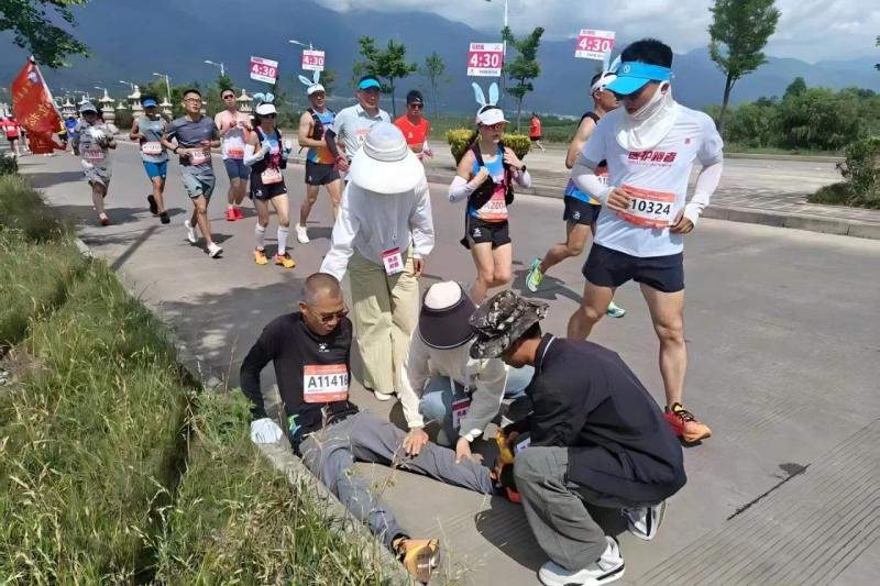 赛事当天,志愿者们早早地来到各自的岗位。开元志愿者作为医疗组志愿者,细心做好赛道观察和应急处理准备,确保选手安全;凭借专业知识,及时发现选手的异常状态,为肌肉酸痛的选手进行简单按摩放松,缓解疲劳,确保选手能以相对良好的状态继续比赛。