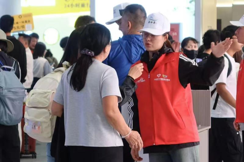 志愿者们以饱满的热情投身岗位,耐心解答旅客疑问,协助老年乘客使用智能设备,为母婴群体开辟绿色通道,用细致入微的服务践行着“奉献、友爱、互助、进步”的志愿精神。