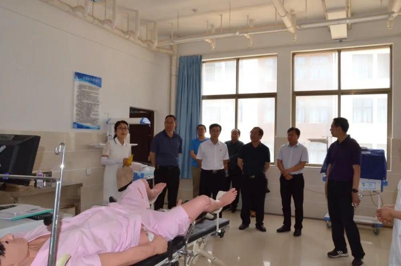 院校双方首先深入学院医学技术系视觉验光实训室、眼镜定配技术实训室,康复技术系中药标本陈列室、中医诊断实训室、运动治疗实训室,护理系费森尤斯实验模拟血透中心、心肺腹综合实训室等实践教学场所进行实地考察和交流。