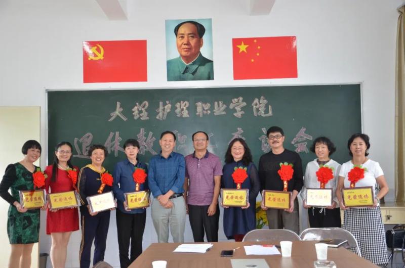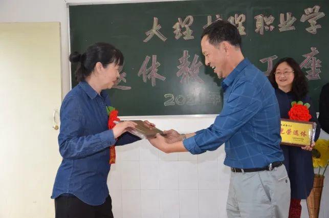 字利鹏专职副书记、苏春华主席为新退休的教职工颁发了“光荣退休”扁牌。