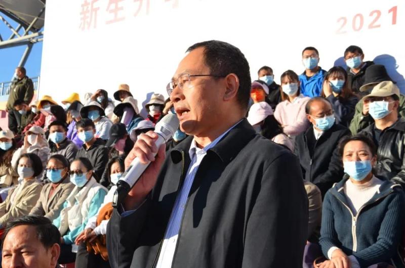 蔡德周院长首先代表全校师生员工,向2021级1804名新同学的到来表示热烈的欢迎!向辛勤培育新同学的父母和师长致以衷心的感谢和崇高的敬意!对运动会的如期召开,表示热烈的祝贺!