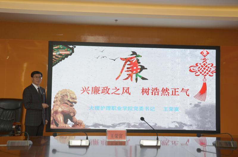 为加强廉政建设,弘扬清风正气,牢固党员干部的责任意识、底线意识和纪律意识。2021年11月25日上午,学院党委书记王荣富以《兴廉政之风 树浩然正气》为题给学院领导班子成员、副科级以上干部、党支部书记、党支部纪检委员、部分教职工上了一堂深刻的廉政党课。
